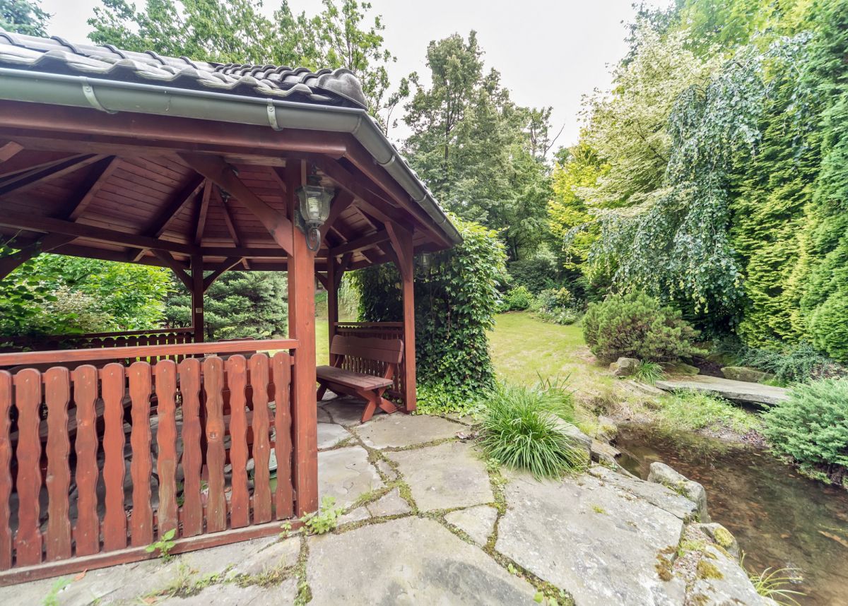 Nieruchomość składa się z działki o powierzchni 2 400 m2, zagospodarowanej, obsadzonej starodrzewiem, z altanką i małym oczkiem wodnym, ogrodzonej - płot wykonany z kamienia oraz elementów kutych, brama dwuskrzydłowa otwierana na pilota.