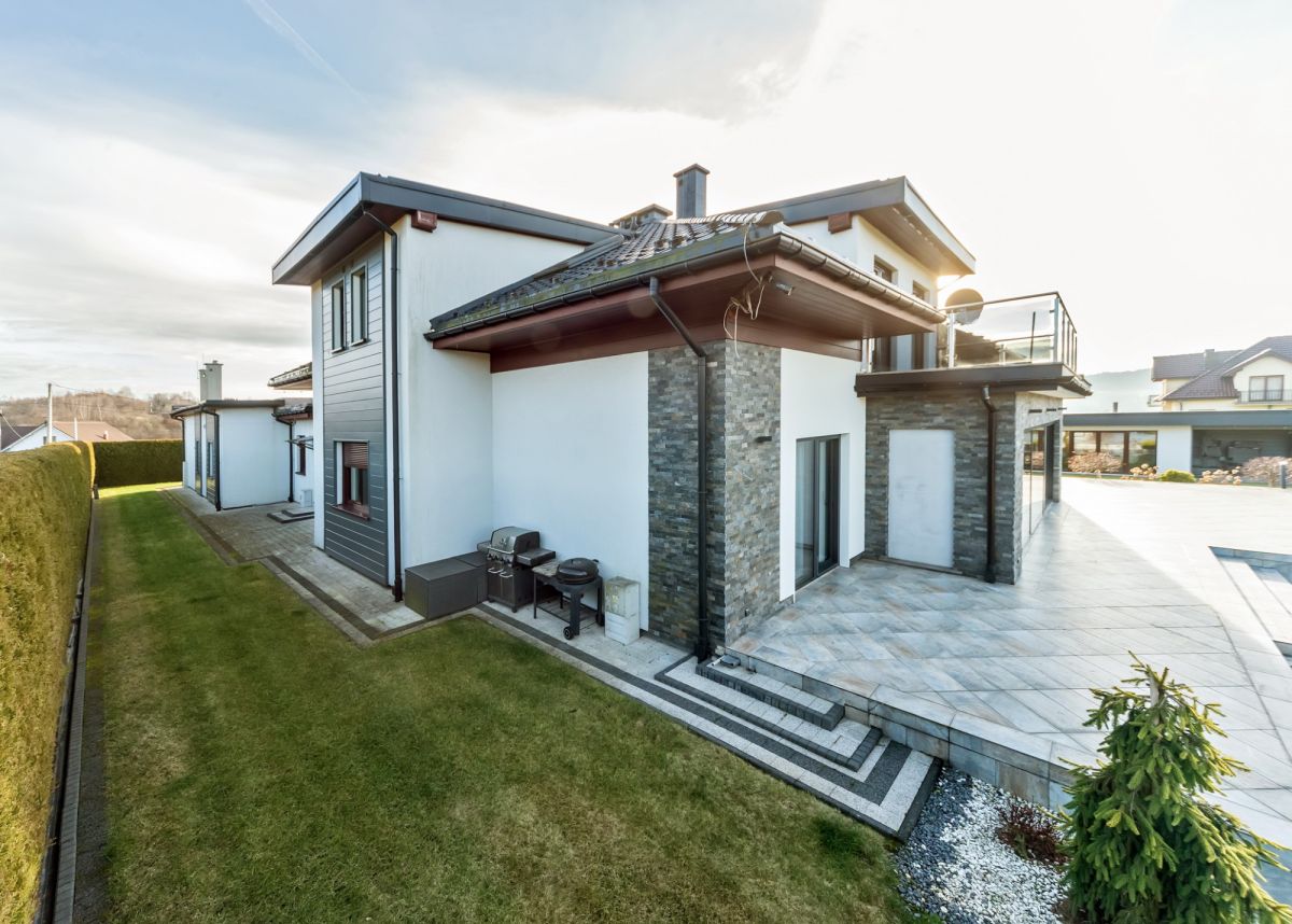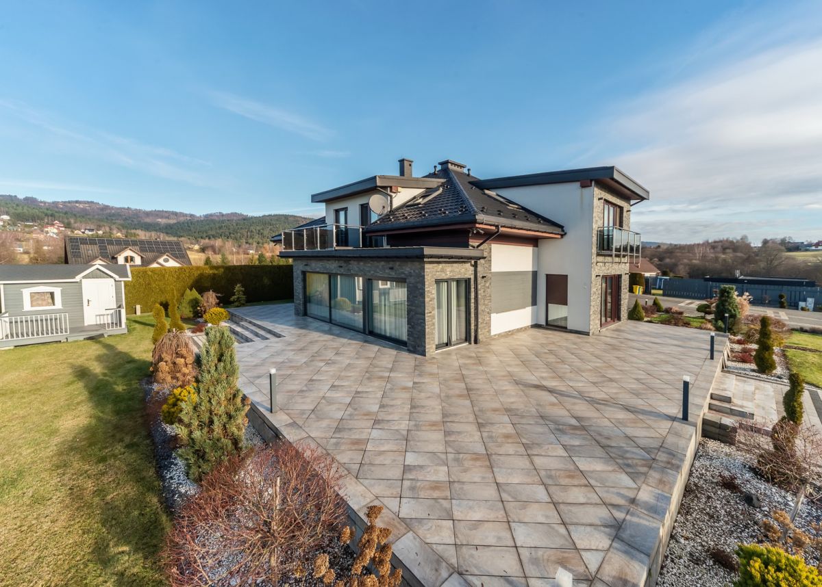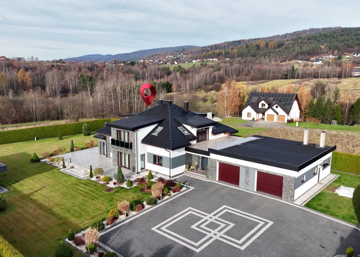 Ten nowoczesny dom z dużym ogrodem zapewniającym prywatność, wyróżnia niepowtarzalny projekt, atrakcyjna lokalizacja i przestrzeń, w której każdy czuje się komfortowo. Wysokie sufity, panoramiczne okna, wnętrza zaprojektowane z myślą o relaksie blisko natury, ale z szybkim dojazdem do centrum. Położony w otoczeniu pasma Beskidów, w miejscowości Gilowice, powiat żywiecki.