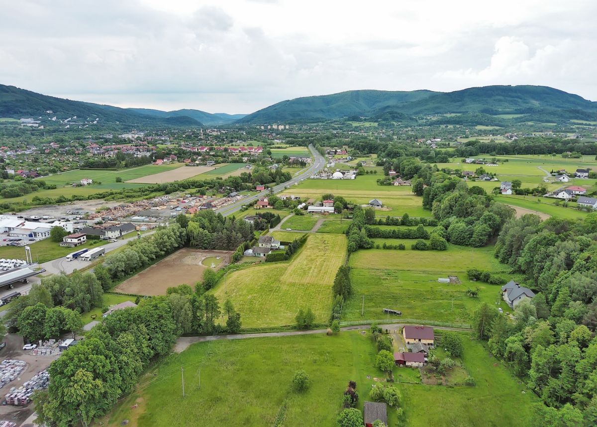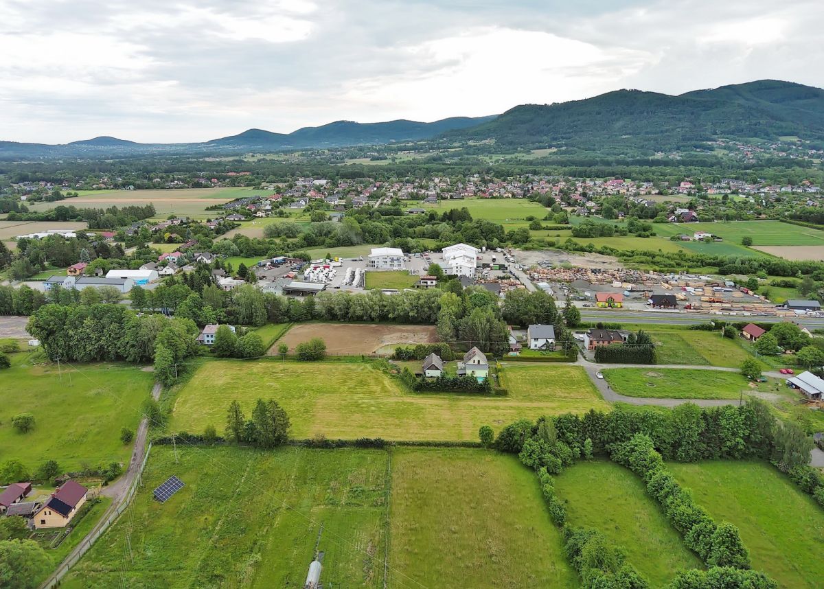 Duża, płaska, dobrze nasłoneczniona parcela o kształcie zbliżonym do prostokąta. W najbliższym sąsiedztwie znajdują się tereny zielone, lasy, luźna zabudowa mieszkaniowa jednorodzinna, widok na panoramę gór, trzecia linia zabudowy gwarantuje spokój z dala od zgiełku ulicy. W promieniu 5 km znajdują się sklepy spożywcze, stacja paliw, szkoła, przedszkole.
