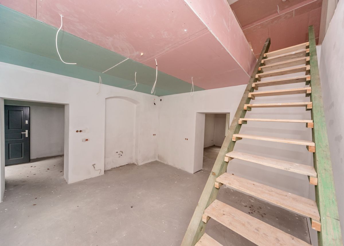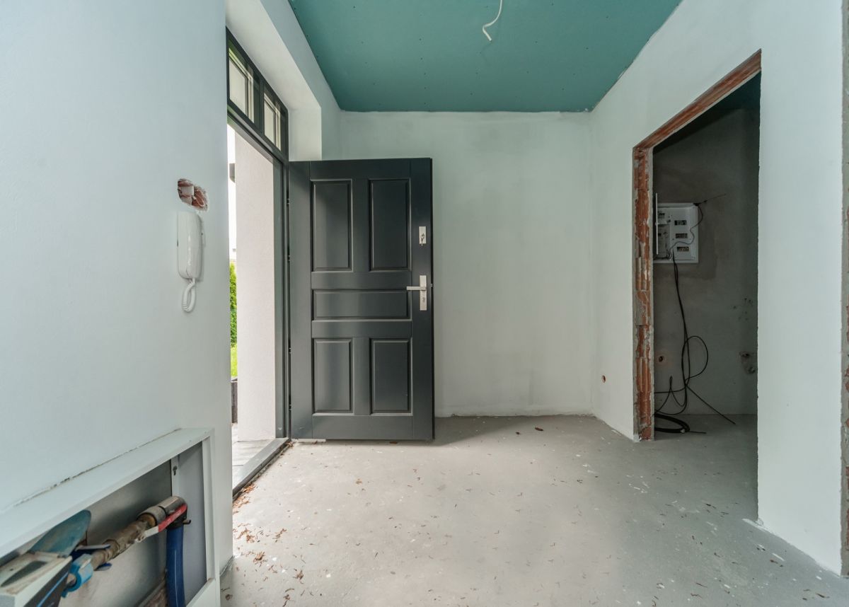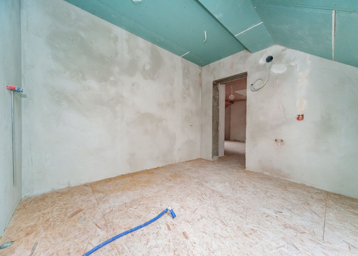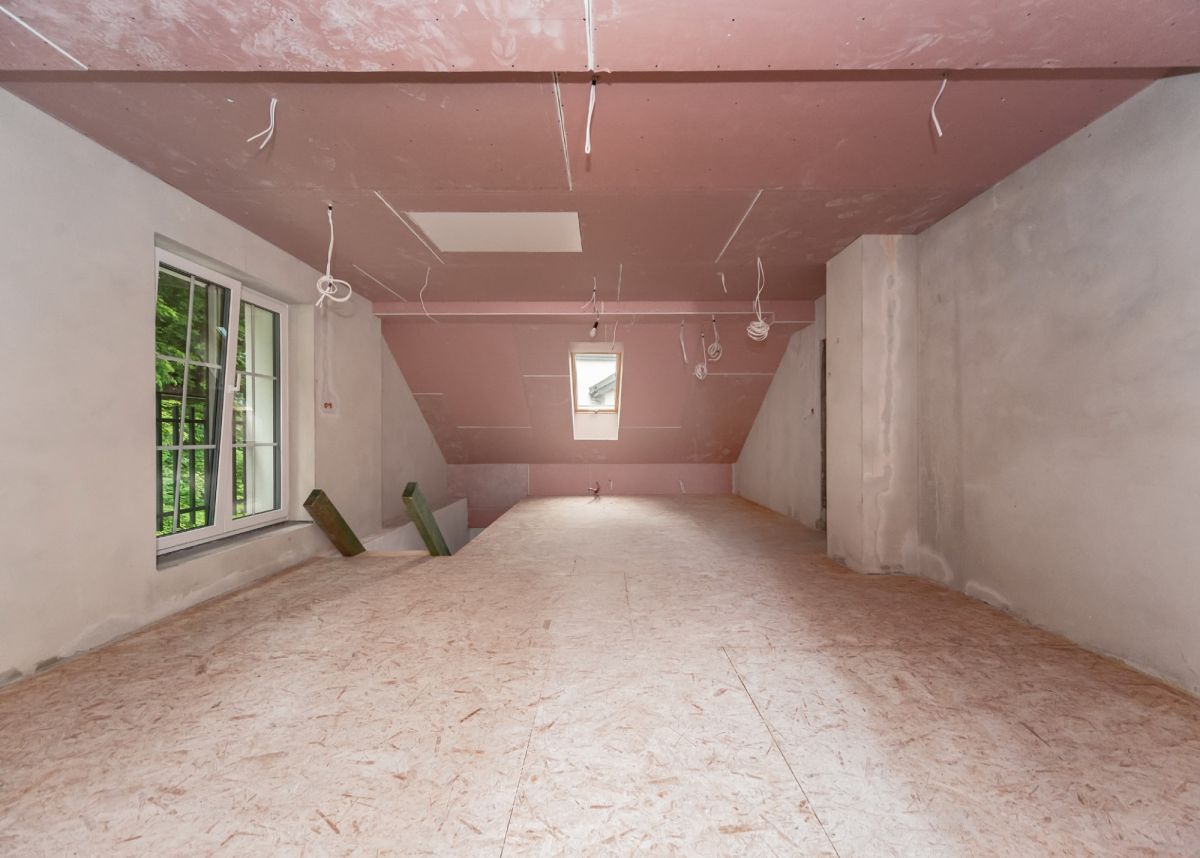 Budynek po generalnym remoncie, nowa więźba, dach, ściany skute do cegły i przykryte nowymi tynkami, nowe wylewki, wszystkie instalacje, okna, gdyby nie mury z cegły, można by powiedzieć, że postawiono go od nowa.
