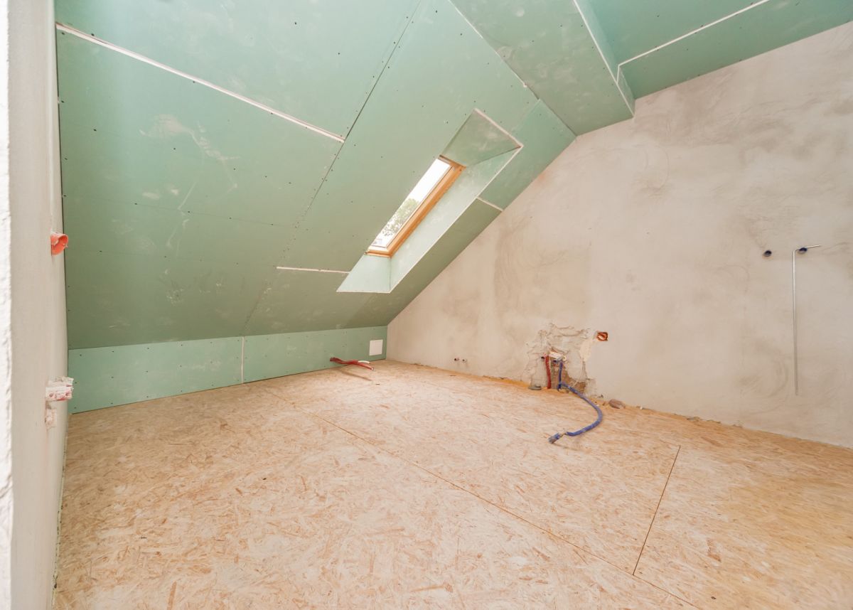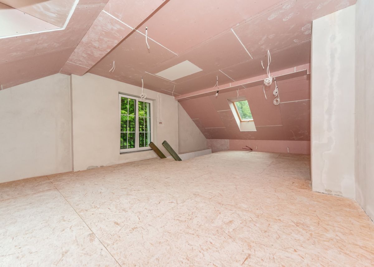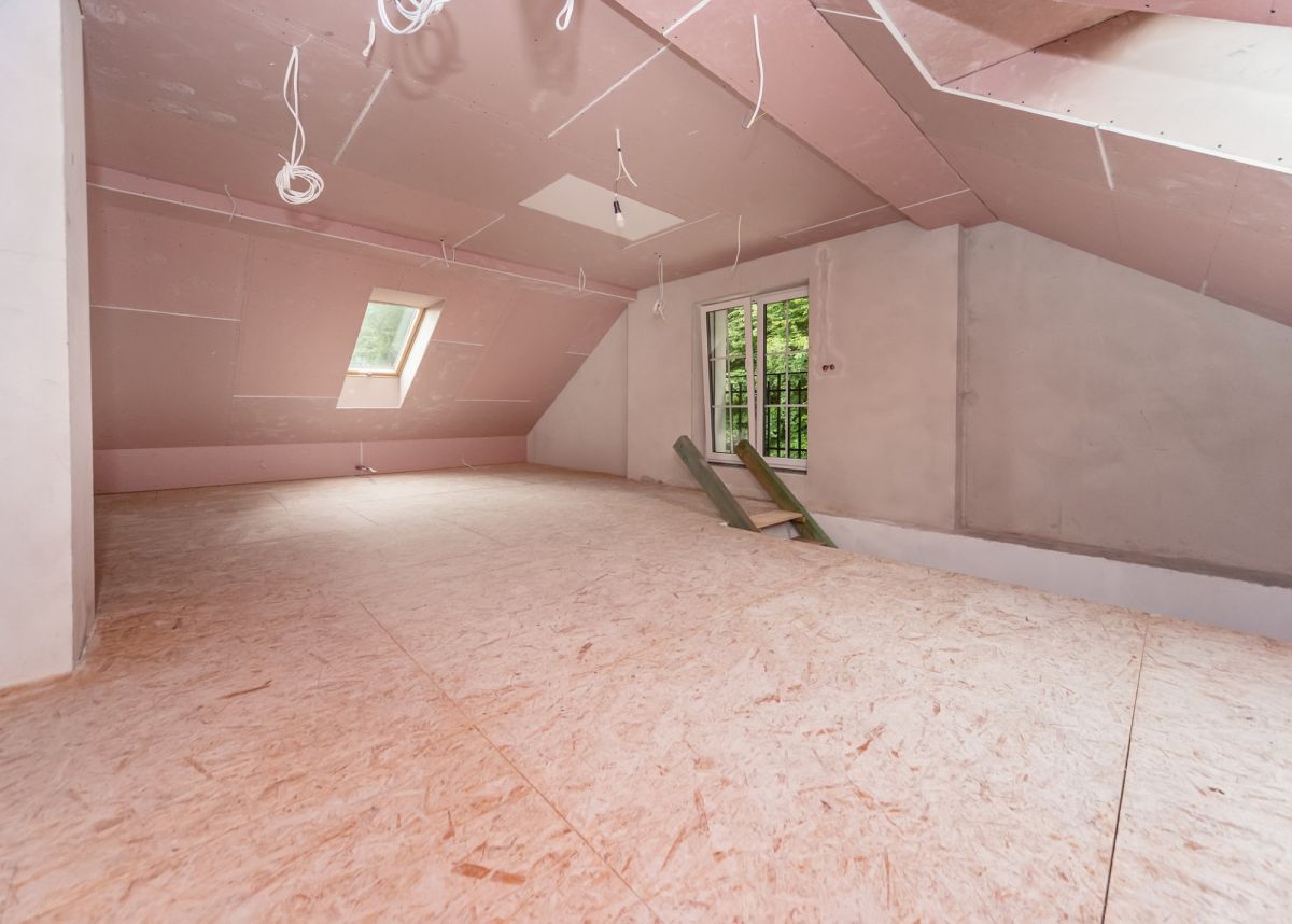 piętro o powierzchni użytkowej 35,76 m2 (całkowitej 55,87 m2): łazienka, pokój 41,92 m2 - można podzielić na dwie sypialnie.