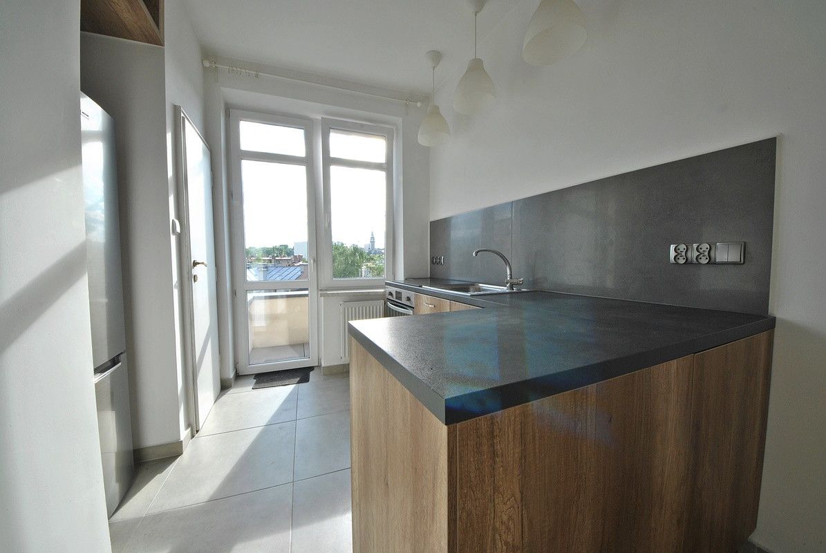 Kuchnia połączona z jadalnią i dodatkowo spiżarka, wyjście na balkon od strony podwórza, dwa pokoje z widokiem na rzekę oraz bielski Ratusz - z jednego wyjście na balkon, łazienka z kabiną prysznicową, osobno wc - mieszkanie nieumeblowane.
