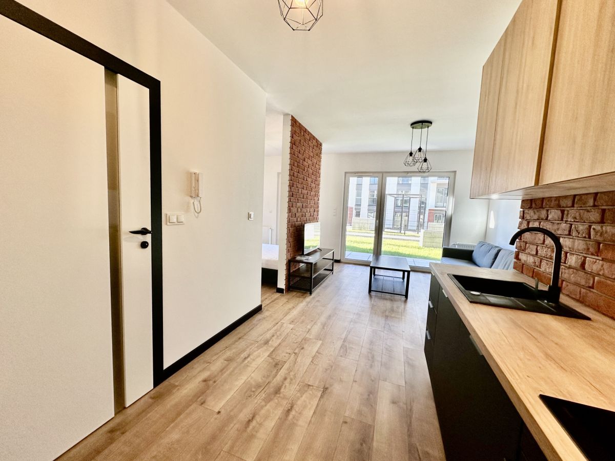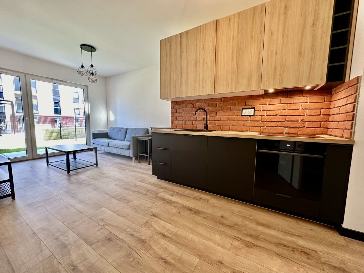 Do wynajęcia kawalerka z ogródkiem, o powierzchni 34 mkw. położona na parterze apartamentowca inwestycji Stary Browar w Bielsku-Białej, przy ulicy Browarnej 16 - dostępna od 04.05.2026 r.